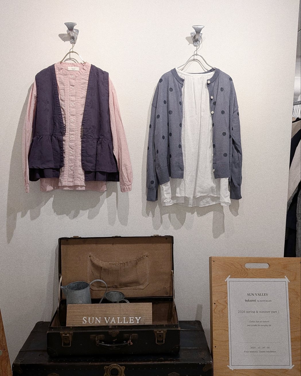 October , 2026 展示会のお知らせ SUN VALLEY tukuroi 2026 Spring & Summer part1 exhibition 大阪 10.29 Wed – 10.30 Thu 大阪府大阪市西区阿波座1丁目11-18 D GALLERY