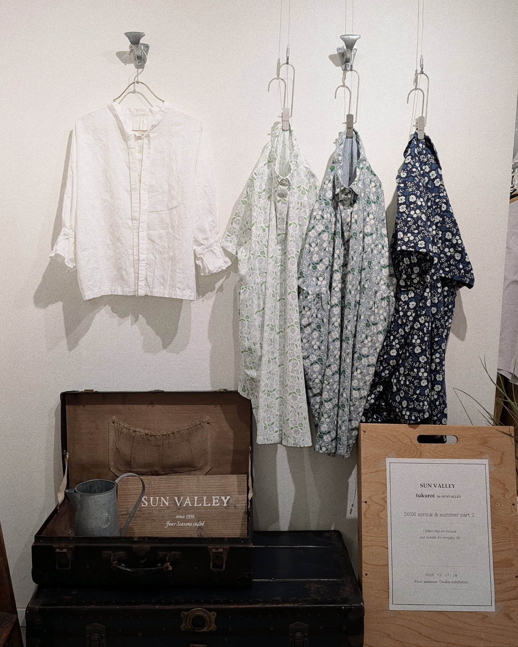 December , 2026 展示会のお知らせ SUN VALLEY tukuroi 2026 Spring & Summer part2 exhibition 大阪 12.17 Wed – 12.18 Thu 大阪府大阪市西区阿波座1丁目11-18 D GALLERY